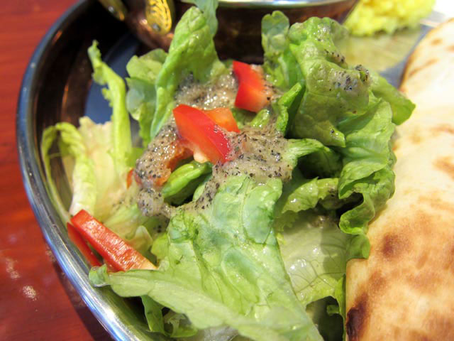 野菜もしっかりついていて、ぴりっと辛くて酸っぱいドレッシングがかかってます。