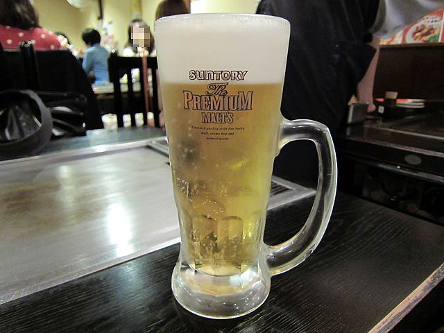 まずは生ビール。冷えたプレミアムモルツでウマイですね〜。