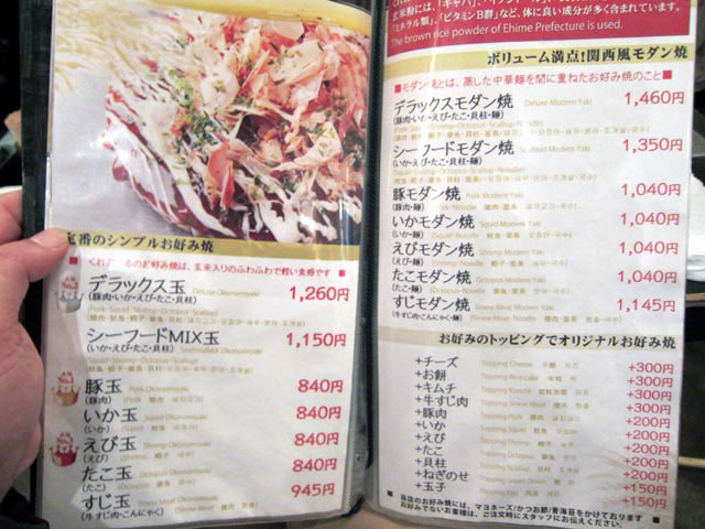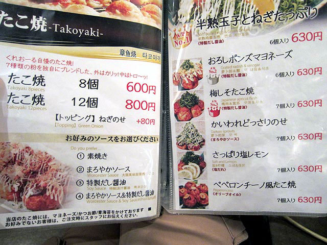 タコ焼きのメニュー