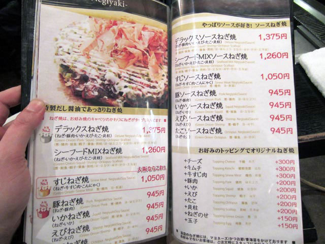 お好み焼きメニュー ねぎ焼きメニュー 焼きそばメニュー 串かつメニュー
