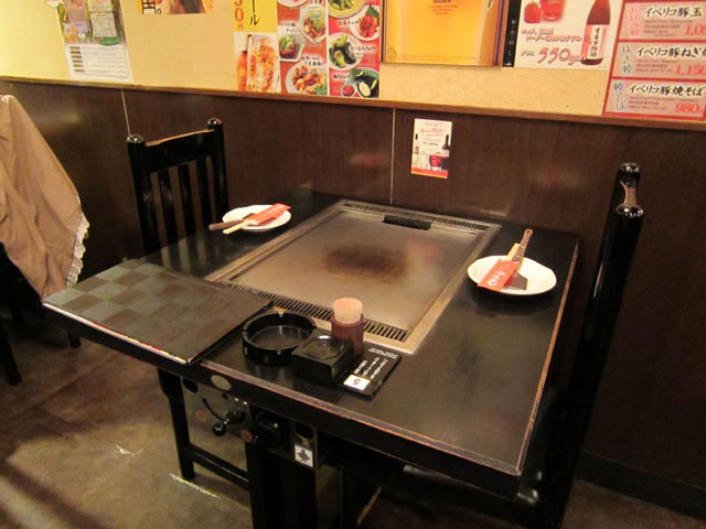 お好み鉄板の付いたテーブル