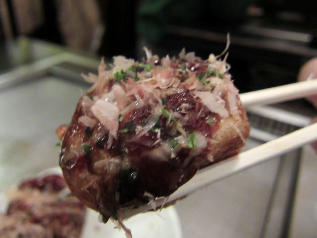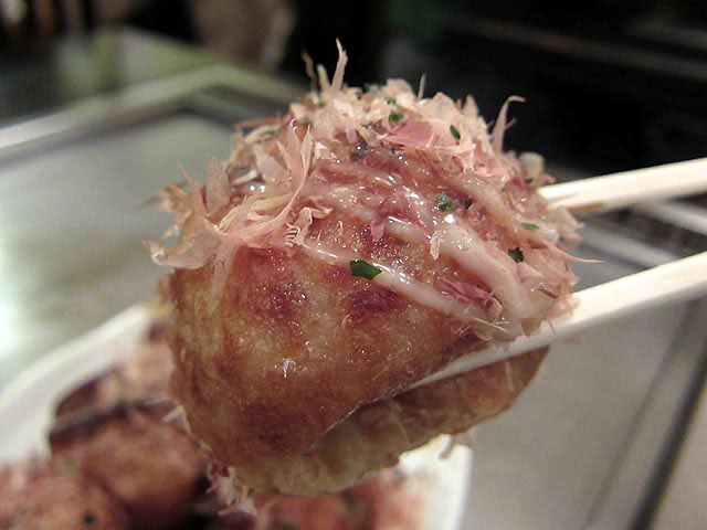 食べてみると、ケッコウ大きめのタコ焼きで、中身のトローっとしたアツアツのネタが印象的でした。
