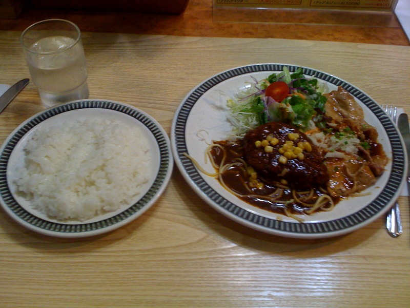 2009.07.15代々木上原の洋食屋ふうらい坊 ポスト はてブ 送る Pocket Pin it コピーしました リンクをコピー 今日は代々木上原駅より徒歩3分の「ふうらい坊」でランチしました。 地元の人が多いようで自転車が何台も止まっていました。 メニューは豊富にあり、フライ系、ハンバーグ、豚生姜焼きの中から2 つを選んだメニューでした。 今日はハンバーグな気分(?)なのでハンバーグ+生姜 焼きでいってみました。 味は特に目立った特徴はなく、味的には洋食屋というよりは定食屋という感じでした。 色々食べられてボリュームもあり、しかも700円! CPが非常に高い代々木上原のふうらい坊でした。