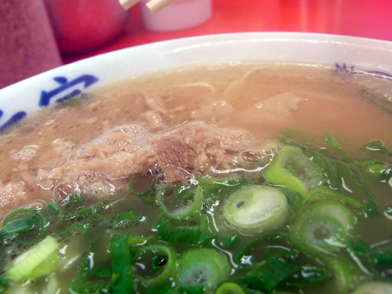 まるでソーメンのような食感の麺に豚骨スープが絡み、スルスル〜っと入ります。