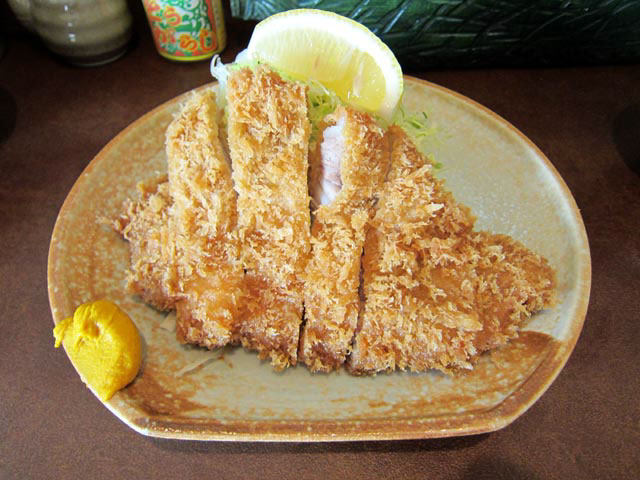 沖縄居酒屋の脂が乗った大判ロースカツがうまい