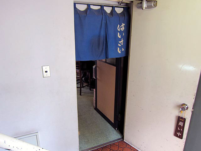 エレベーターを降りると目の前の鉄扉に暖簾がかけられてるだけのお店が現れます。