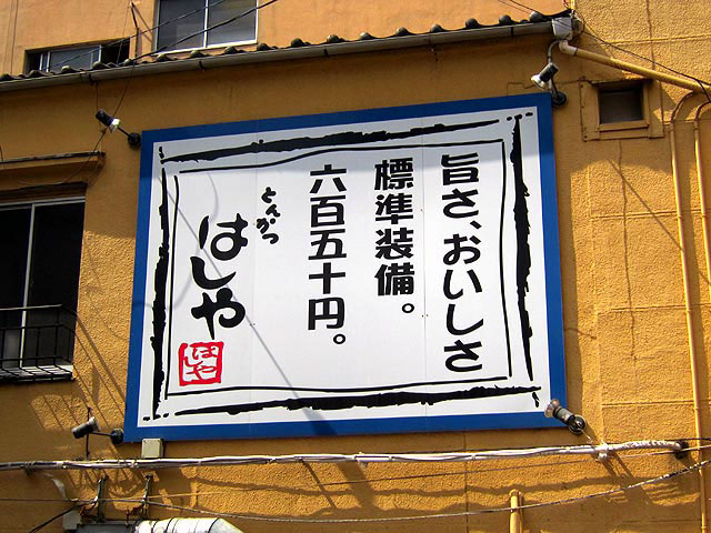 お店の横には「旨さ、美味しさ、標準装備650円 とんかつはしや」の看板が掲げられてます。