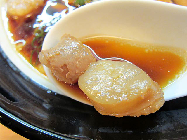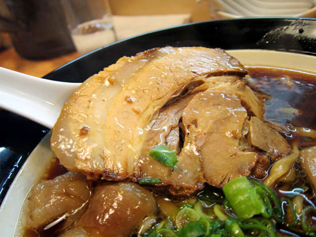 トッピングは柔らかく形が崩れ始めてる大判チャーシュー。脂身は少なめだが、醤油ラーメンなんでこのくらいの感じがいい。