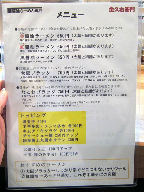 金久右衛門 梅田店 (梅田、北新地/ラーメン)大阪ブラックがうまい
