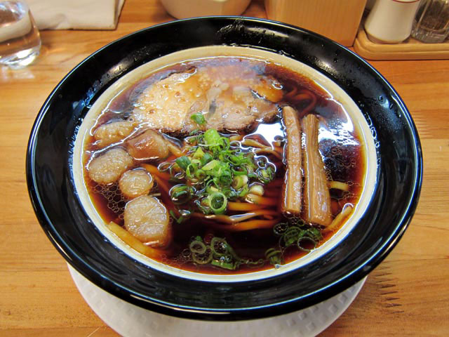 なんだか関東蕎麦を彷彿とさせる黒さのスープですね〜。