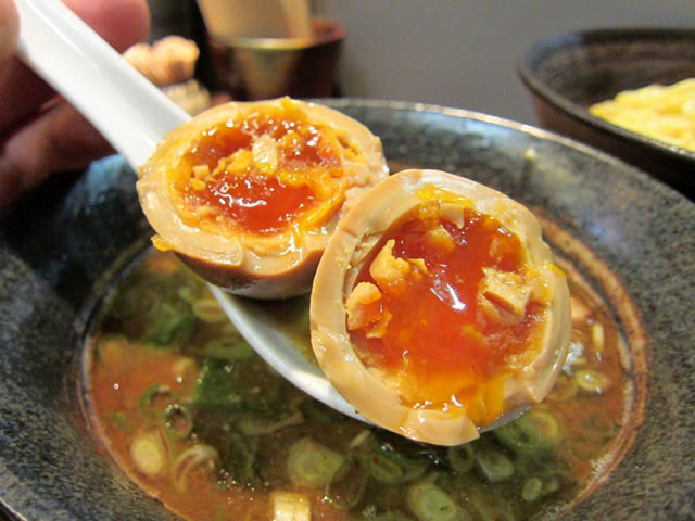 味玉はまるごと入っていて、ぱかっと箸で割ると濃厚そうなオレンジ色の黄身が現れます。