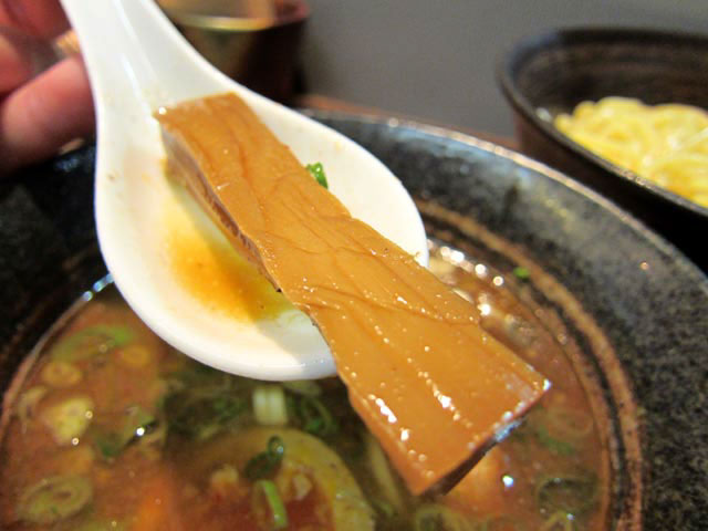 濃厚魚介系ということだが、甘めの酸味を帯びたつけ汁が印象的で、魚介の濃厚な感じはおさえ目な感じでした。