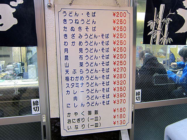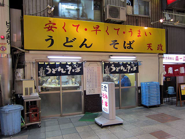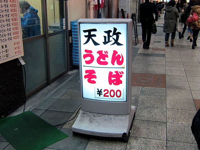 店頭には「天政 うどん そば ¥200」の立看板があり、