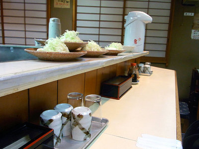 キャベツの千切りはカツの量に対しては若干少なめ。