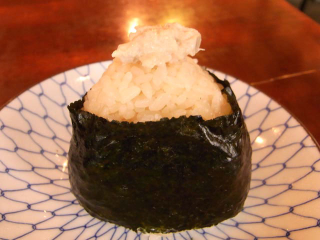 シーチキンのおにぎりは、よく見るとおにぎりの上に少しだけシーチキンが乗ってます。